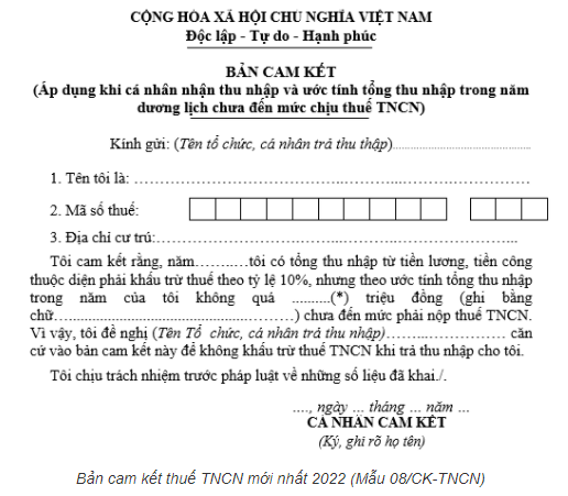 Từ ngày 01/01/2022, cá nhân làm bản cam kết thuế TNCN (để không khấu trừ 10% thuế TNCN) theo Mẫu […]
